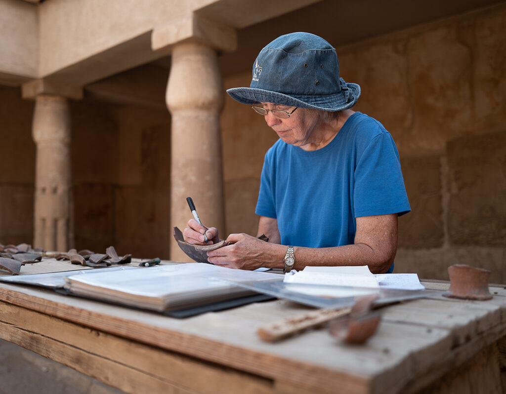 في غضون ذلك، يتم فحص جميع القطع الأثرية التي تم العثور عليها أثناء الحفريات - والتي قد سُجّلت ورُسِمت ووُثّقت يومأً بعد يوم - واحدة تلو الأخرى للتأكد من عدم إغفال أي شيء، ثم يتم ترتيبها بعناية داخل المستودع. يتم تسجيل كل خطوة، بحيث يتمكن أي شخص يرغب في المستقبل في استعادة مكتشفات بعثة عام 2025 ويستطيع التنقل داخل المستودع بسهولة.