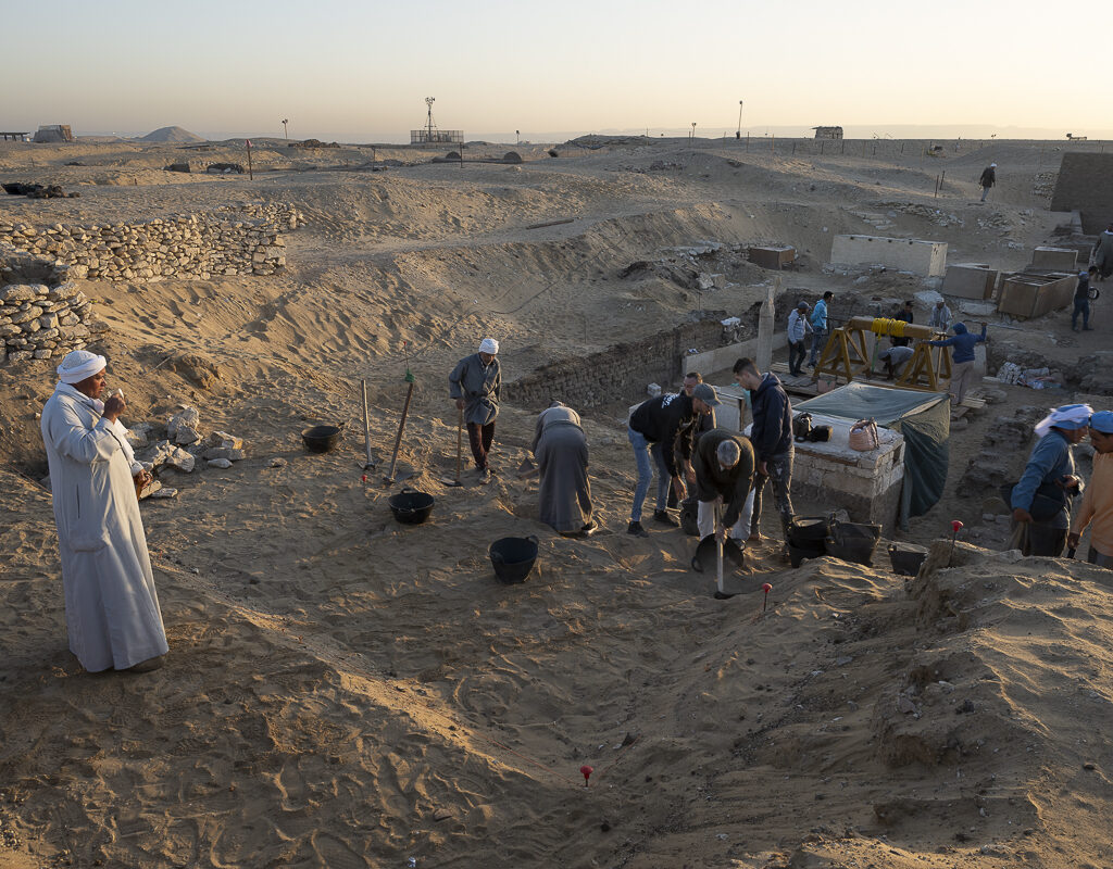 I nostri collaboratori egiziani sono già arrivati, il rais Mohammed ci vede e ci accoglie con un sorriso. Tra una stretta di mano e l’altra, ci si augura il buongiorno: sabāh el-kheir, a cui risponde un melodioso sabāh el-nur – “buongiorno di luce”. E la luce, in effetti, sta davvero arrivando. Intorno a noi, il sole comincia a risalire l’orizzonte, scaldando lentamente la sabbia; l’aria si riempie di una vibrazione sottile – quella di un luogo che, giorno dopo giorno, torna a raccontare la propria storia.