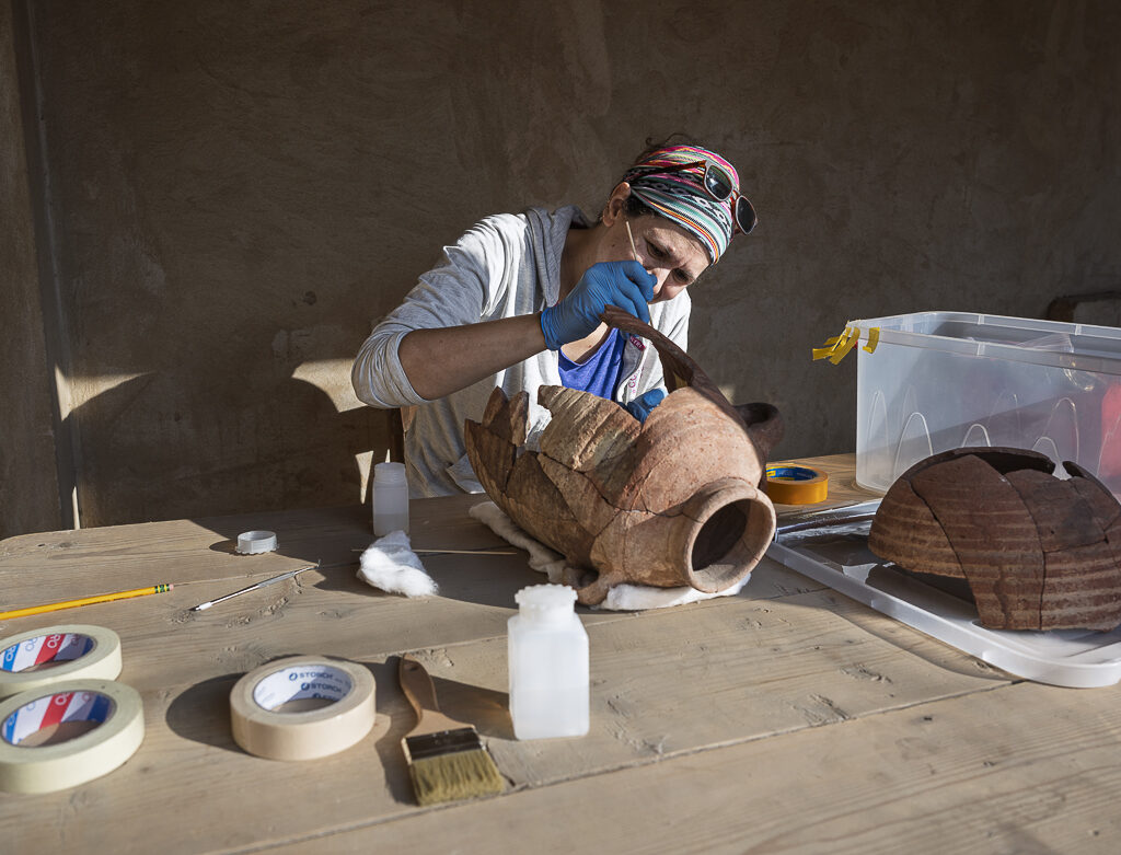 [Figura 6: Sara Aicardi impegnata nel restauro di un vaso. Foto: Nicola Dell’Aquila]