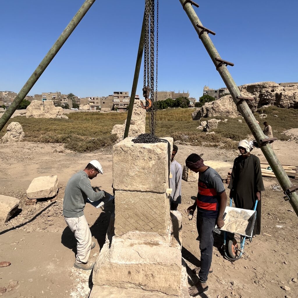 Oltre allo scavo, la missione ha dedicato tempo anche alla conservazione e alla valorizzazione del sito. Nel colonnato settentrionale del complesso templare, ad esempio, abbiamo iniziato a rimettere in piedi alcuni pilastri crollati, usando tecniche tradizionali per sollevare e riposizionare i blocchi antichi. È stato emozionante vedere i pezzi del passato ritrovare il loro posto!