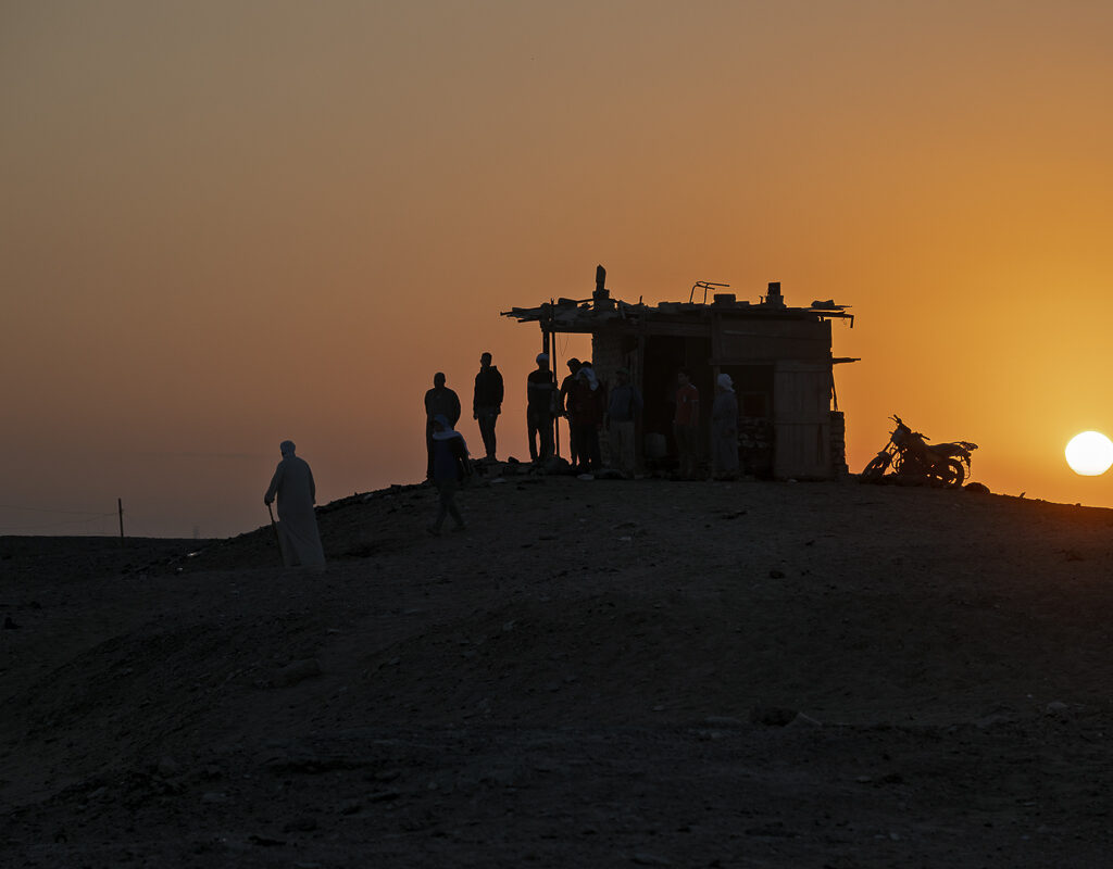 عندما غادرنا منزل البعثة في أبو صير، كان الفجر قد بزغ. كانت الساعة 6:20 بالضبط. كانت الأضواء الأولى تلون السماء باللون الأحمر وتنعكس على الرمال، التي بدت وكأنها تتألق بانعكاسات ذهبية. البعض يشرب فنجان قهوته بسرعة قبل الصعود إلى الحافلة، بينما يحمل آخرون حقائبهم وأدواتهم. الكلام قليل، والنعاس لا يزال يسيطر على المكان، هناك من يستعرض في ذهنه ما عليه فعله في الساعات القادمة، و هناك من ينظر من النافذة