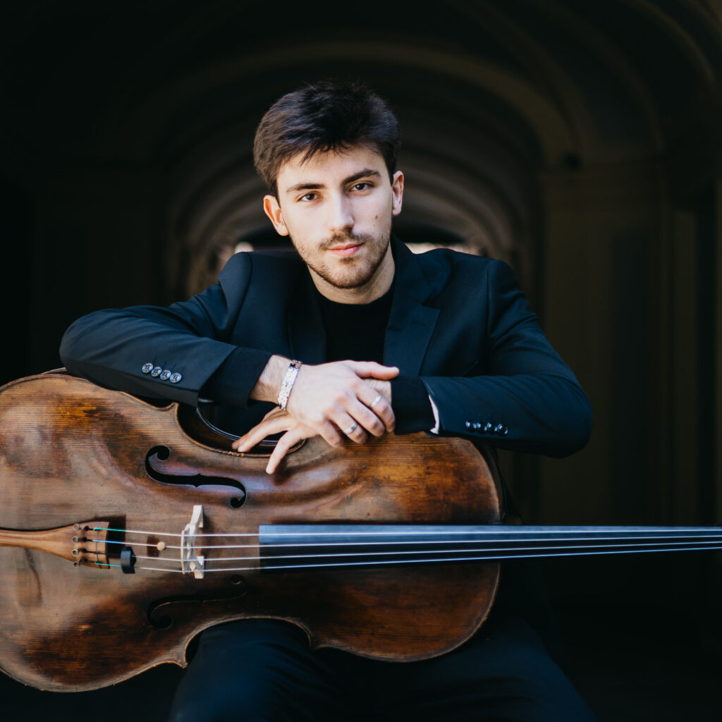 Matteo Fabi (2004), violoncellista, si è formato al Conservatorio “G. F. Ghedini” di Cuneo, diplomandosi con lode e menzione sotto la guida di Andrea Cavuoto. Ha proseguito gli studi con Antonio Meneses (Accademia Stauffer e Accademia Chigiana) e Giovanni Sollima, conseguendo nel 2025 l’Artist Diploma dell’Accademia Nazionale di Santa Cecilia con il massimo dei voti e la lode. Svolge intensa attività concertistica in recital e formazioni cameristiche per festival quali Amici di Paganini, Back to Bach, Chigiana Summer Festival, collaborando regolarmente con Salvatore Accardo ed esibendosi più volte come solista con orchestra. Dal 2025 è membro del Trio Ares. Vincitore di numerosi concorsi nazionali e internazionali, è stato borsista De Sono per due anni e ha partecipato a masterclass con musicisti di fama mondiale.